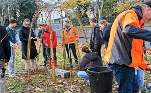 Les jeunes du DIME construisent une cabane en osier vivant à l’entrée du collège